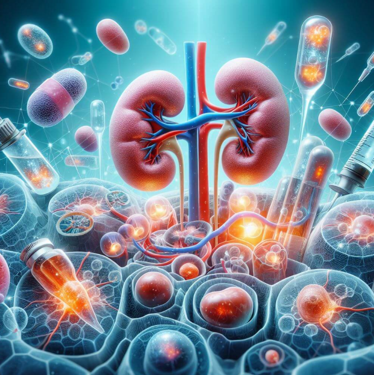 En estudios con animales, se ha demostrado que la administración de follistatina por vía intravenosa o mediante terapia génica mejora la función renal, reduce la fibrosis,  aumenta la regeneración renal y disminuye la inflamación en modelos.  El riñón es un órgano que se encarga de filtrar la sangre y eliminar los desechos y el  exceso de agua a través de la orina. El riñón también regula el equilibrio de  electrolitos, el pH, la presión arterial y la producción de eritropoyetina. El riñón puede  sufrir diversas enfermedades, como la insuficiencia renal, la nefritis, la nefropatía  diabética y el cáncer, que afectan a su función y a su estructura.