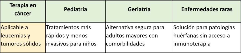 Los estudios preclínicos han demostrado que la generación de células CAR-T in vivo no solo es efectiva contra leucemias, sino que puede adaptarse para abordar neoplasias sólidas, superando algunas limitaciones de infiltración y microambiente tumoral que afectan a la terapia ex vivo.
